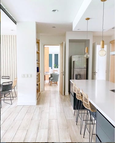 Grandes formatos y juntas mínimas: continuo y moderno, realza espacios.
